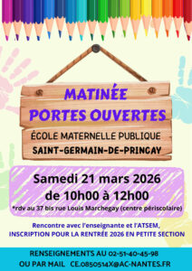 PORTES OUVERTES ÉCOLE PUBLIQUE L’école publique RPI vous ouvre ses portes… Samedi 21 mars 2026 de 10h00 à 12h00 rue Louis Marchegay, Accueil Centre de