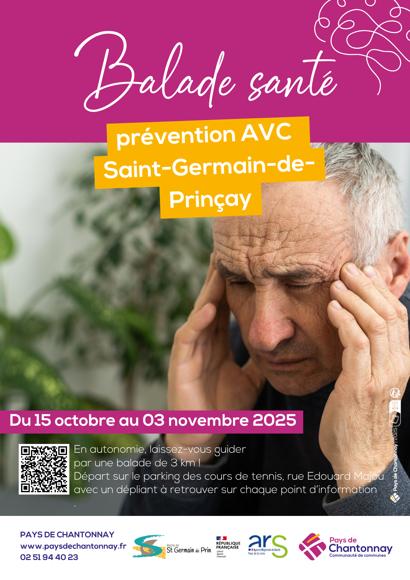➡Une balade santé AVC, vous sera proposée à Saint-Germain-de-Prinçay coutant octobre.