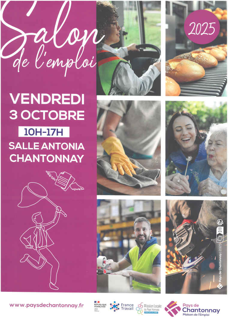 La Communauté de communes du Pays de Chantonnay, en partenariat avec l’agence France Travail Roche-Nord, organise la 4ème édition du Salon de l’emploi du Pays de Chantonnay le vendredi 3 octobre 2025, de 10h à 17h, à la Salle Antonia à Chantonnay.